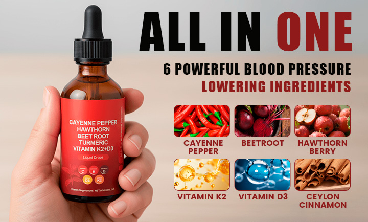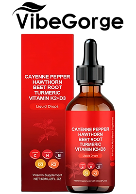 This drop formula combines cayenne pepper and hawthorn as powerful vasodilators that rapidly open blood vessels and improve circulation while beet root further enhances nitric oxide production to sustain healthy blood flow and lower pressure; turmeric’s curcumin simultaneously fights inflammation and prevents plaque formation; and vitamin K2 paired with D3 activates proteins that remove calcium deposits from arteries and redirect it to bones, collectively clearing clogged vessels, preventing new blockages, and restoring flexible, healthy blood flow.